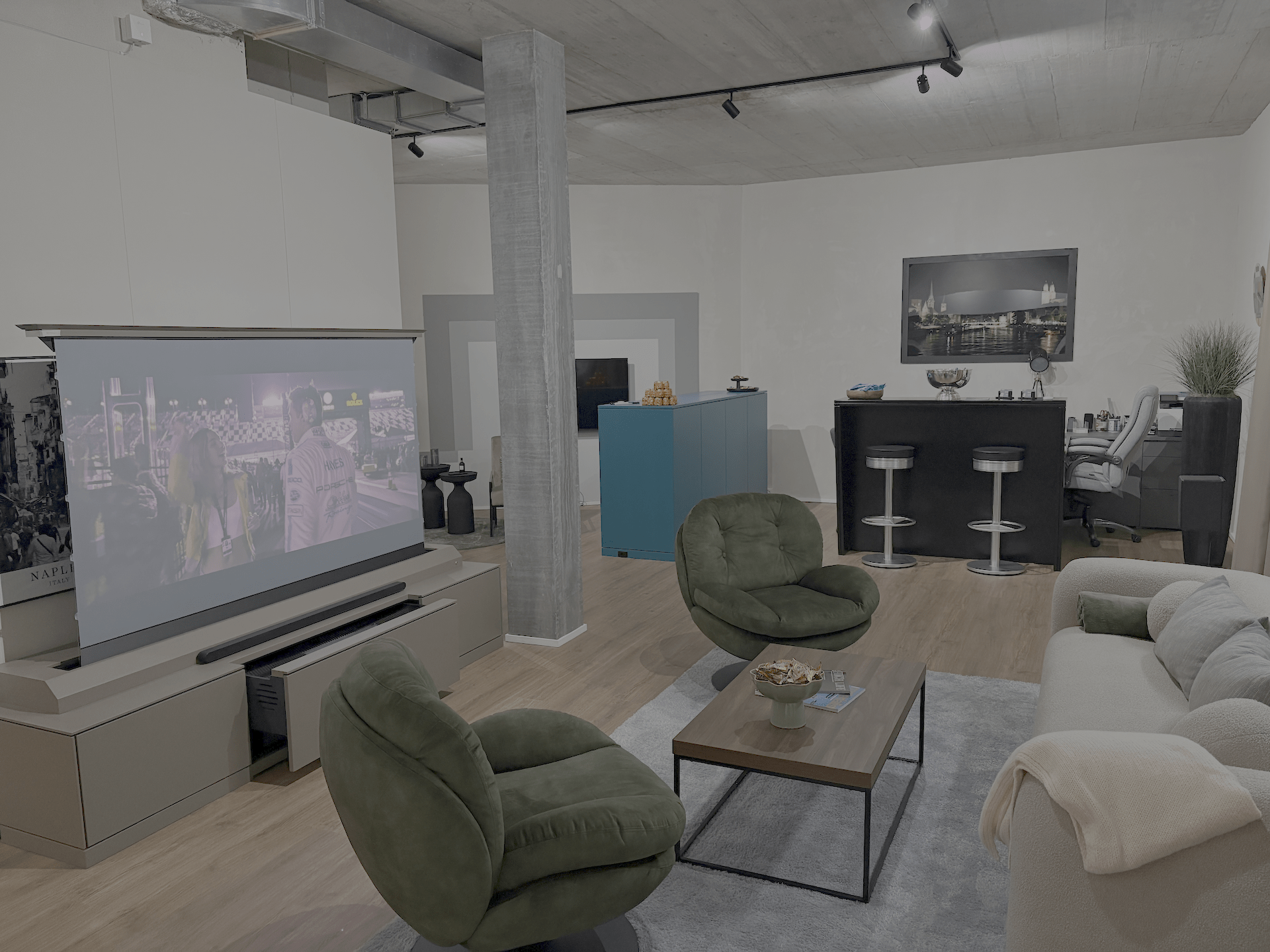 Unser Team bringt dein Heimkino direkt zu dir, baut es auf, richtet alles ein und sorgt dafür, dass du sofort starten kannst – ohne Stress, ohne sichtbare Kabel und Geräte. Design-Möbel, WLAN, Bild, Sound, Fernbedienung und Handy-App – alles auf Profi-Niveau eingestellt.