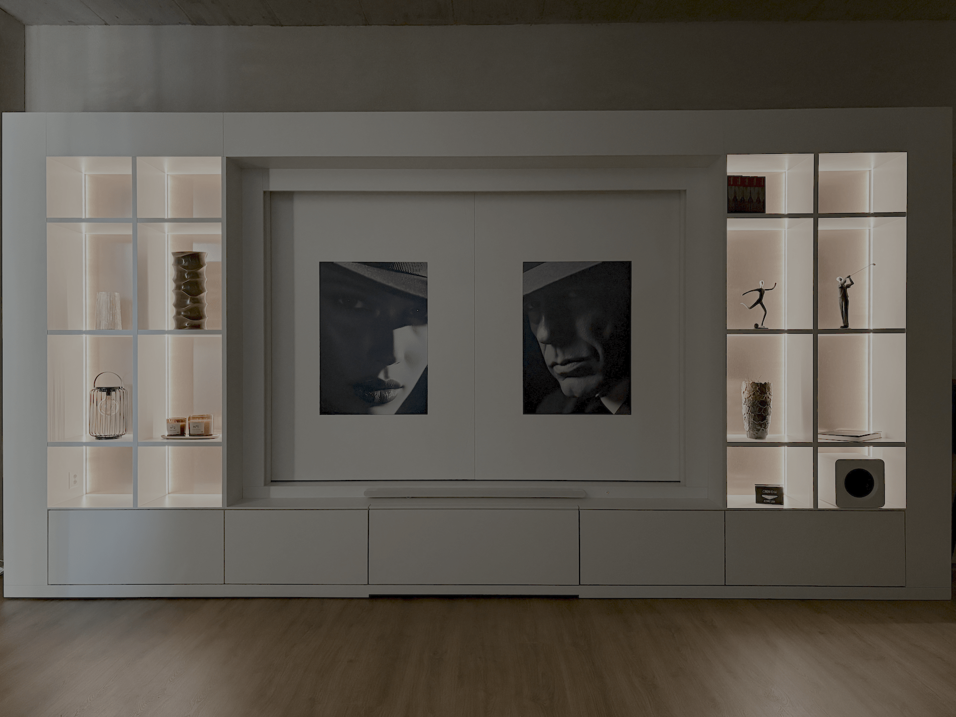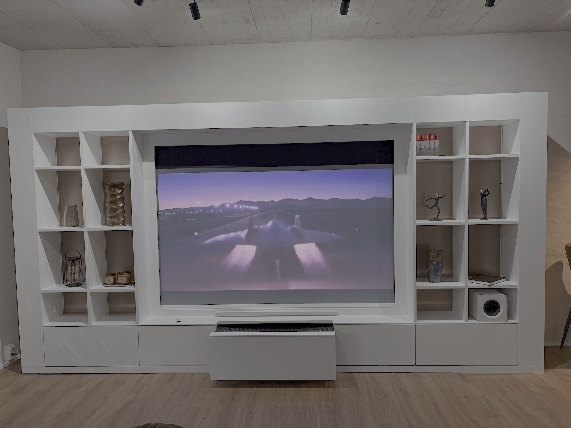 Unsichtbare High-End-Technik, eingebettet in ein massgefertigtes Design-Möbel, das mehr kann als gut aussehen. Es lässt Klang spürbar werden, Bildwelten lebendig – und Räume zu einem Erlebnis. Jedes CINEMA-TO-GO™ Modell ist ein Gesamtkunstwerk: modular aufgebaut, ausgestattet mit modernster Technik und bereit für den sofortigen Einsatz. Keine sichtbaren Kabel und Geräte. Integriert in dein Smart Home. Kein Kompromiss. Nur pure Emotion auf Knopfdruck.