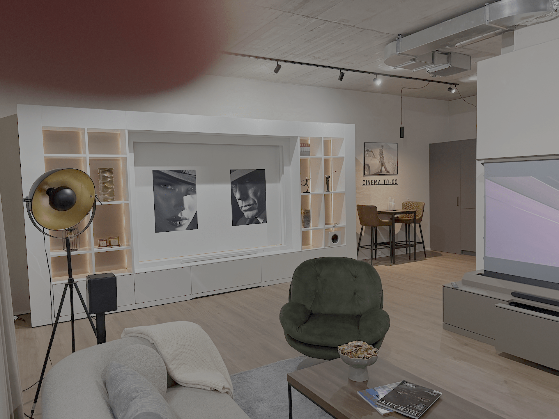 Passt sich jedem Raumkonzept an. Ob stilvolles Wohnzimmer, Raumtrenner für Wohnraum und Esszimmer, Schlafzimmer, Gaming-Room, Smoking-Lounge, luxuriöse Suite oder exklusiver Meetingbereich – CINEMA-TO-GO™ passt sich deinen Räumen und Ansprüchen an.